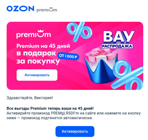 Пример персонализированного email-письма от Ozon