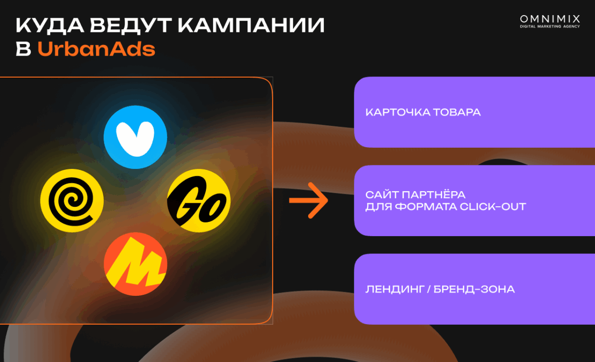 UrbanAds предлагает широкий набор рекламных форматов, адаптированных под специфику каждого сервиса. В тексте приведены лишь выборочные примеры — внутри сервисов доступно больше вариантов размещения, которые подбираются в зависимости от задач кампании.