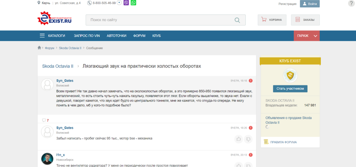 Сообщения на тематическом форуме. Внутреннее сообщество, где пользователи могут делиться опытом друг с другом. Хороший вариант для технически сложной продукции. Яркий пример — продажа автозапчастей. На таких форумах автовладельцы делятся советами, спрашивают мнения, скидывают фото и т. д.