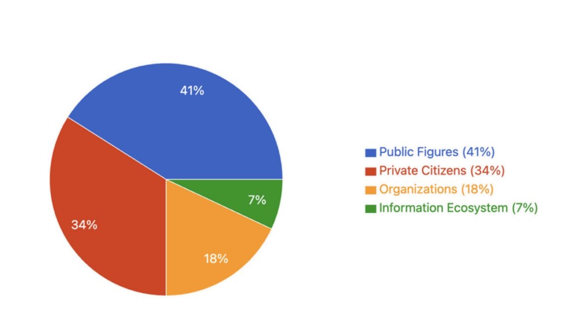 Дипфейки знаменитостей, политиков, бизнес-лидеров все еще занимают первое место — 41% всех инцидентов с дипфейками. Но объектами практически каждой третьей атаки (31%) становились обычные люди, преимущественно женщины и дети. Фиксируется рост случаев в системе образования, когда дипфейки используются в качестве орудия для преследования и унижения. В 18% случаев жертвами были организации (государственные и бизнес-структуры, образовательные учреждения). В 7% случаях дипфейки использовались для распространения фальшивых историй, информации о выдуманных событиях, то есть были направлены против информационной экосистемы в целом.