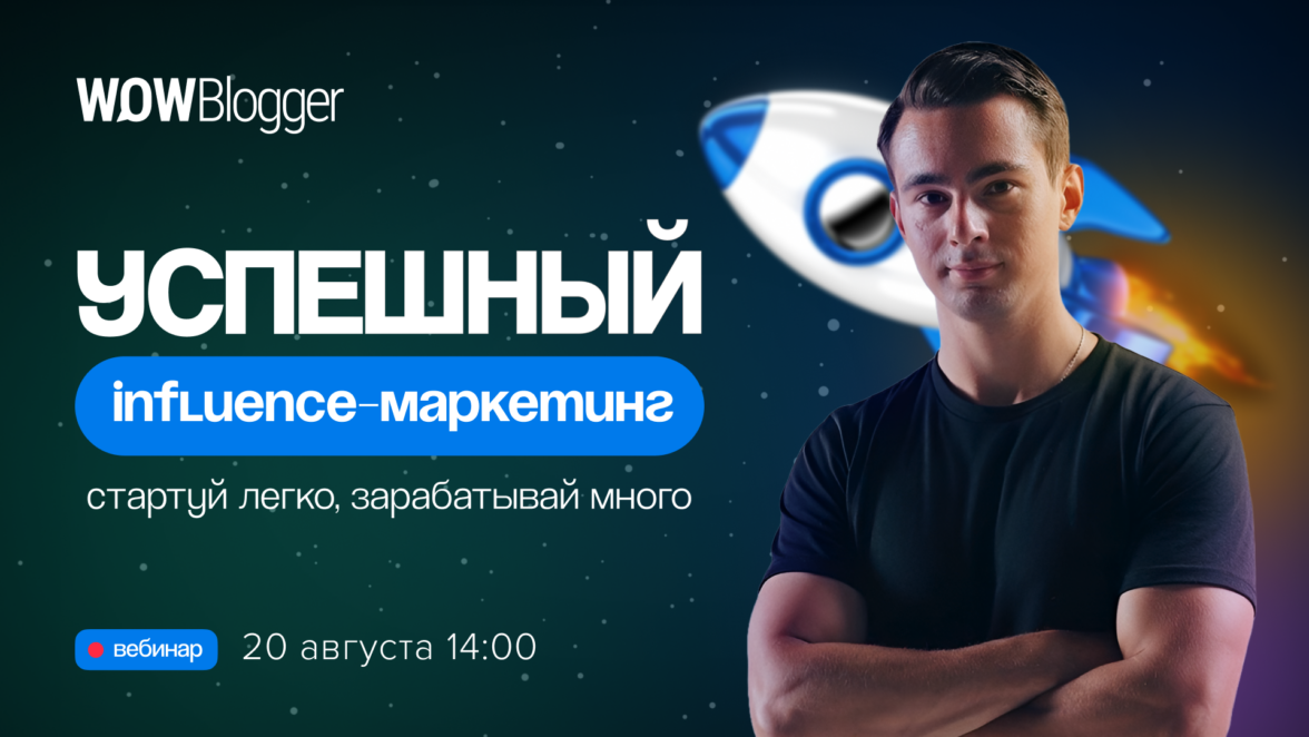 Этот вебинар поможет вам понять, как можно начать с небольших вложений и достичь впечатляющих результатов в мире инфлюенс-маркетинга. Приятным бонусом станет специальный промокод для участников мероприятия, который поможет вам запустить рекламные кампании и увидеть желаемый результат.