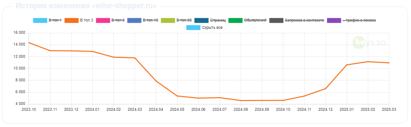 Рост запросов в топе-10 с сентября 2024 по март 2025 составил 92%.