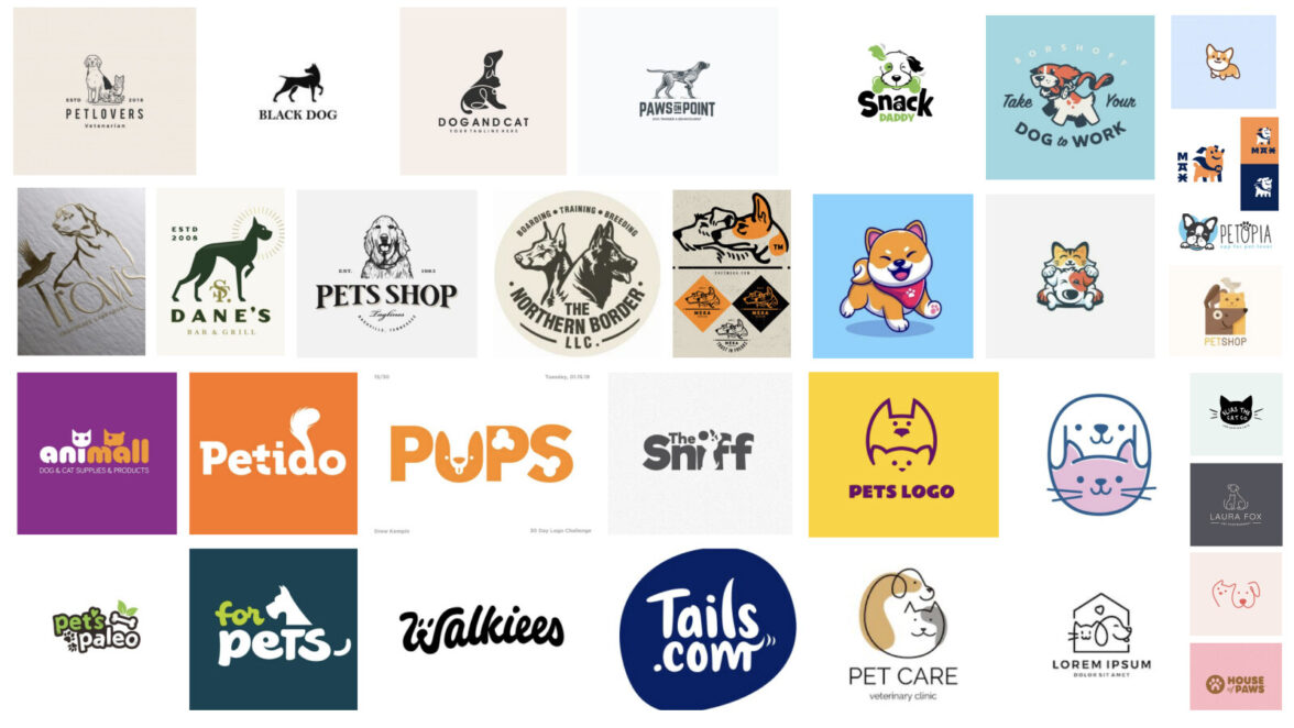 В начале работы мы собрали для Василия мудборд с логотипами в разных стилях, чтобы понять, что наиболее близко позиционированию компании. Из всех вариантов понравились те, где есть отчетливые силуэты животных.