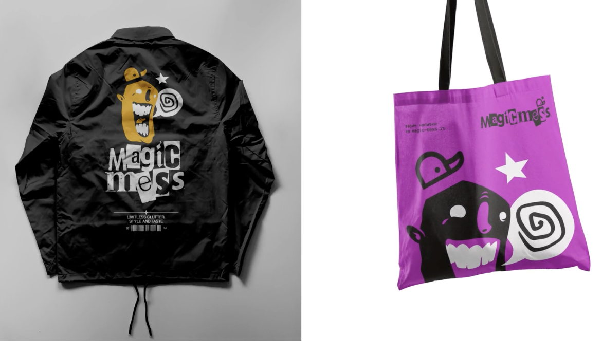 Фирменный стиль Magic Mess — хороший пример того, как яркой концепции и позиционированию не хватало соответствующего визуала. В таком случае, обращаться к сторонним специалистам — необходимо, поскольку свежие идеи и взгляд на бренд решает многое.