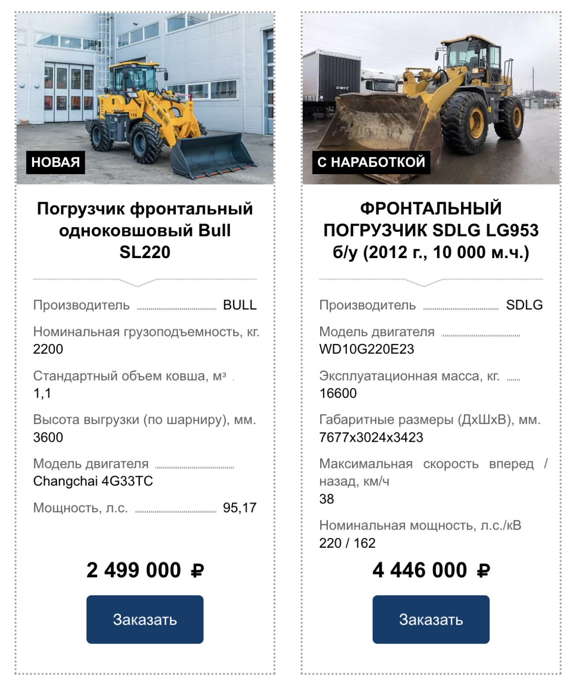 На первом листе пагинации у большинства товаров не была указана цена. Мы вывели стоимость на большую часть категорий каталога спецтехники.