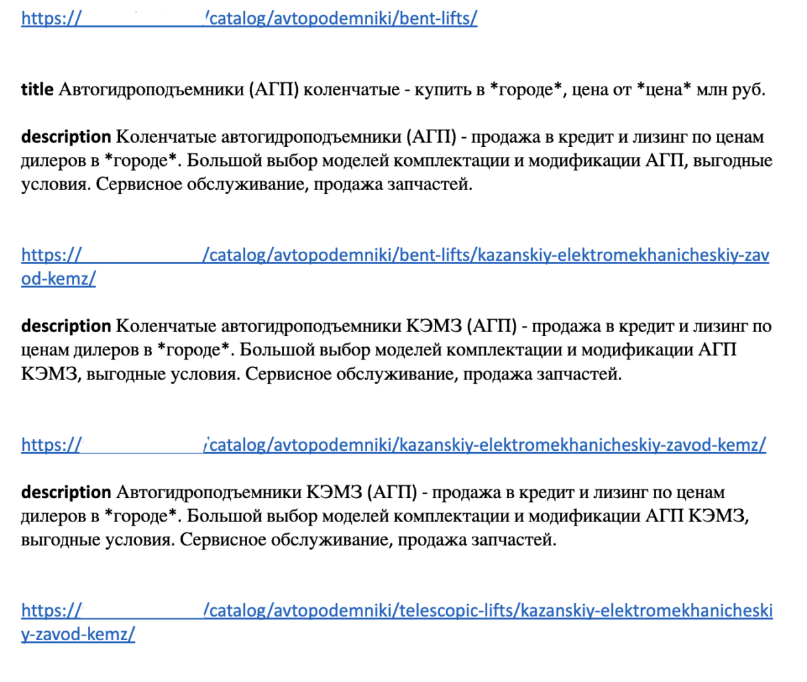 Оказалось, что для части запросов отсутствуют посадочные страницы. Поэтому мы распределили запросы семантического ядра по страницам с учетом степени региональности и коммерциализации запросов. Для коммерческих запросов были созданы страницы категорий каталога, а для информационных запросов подготовлены обзоры на спецтехнику, которые затем мы разместили в разделе статьи.