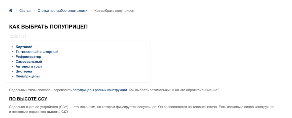 Пример статьи «Как выбрать полуприцеп», подготовленной агентством MediaNation
