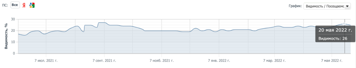 +9% к видимости сайта в поисковых системах Яндекс и Google — c 17% до 26%;