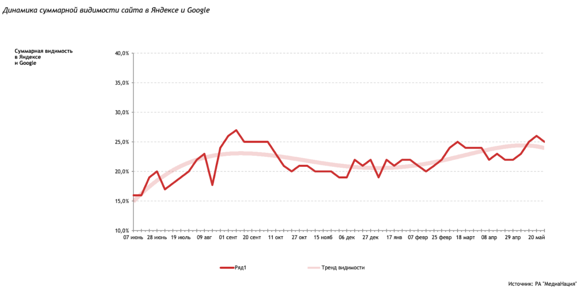 увеличить видимость сайта до 25% в поисковых системах Яндекс и Google и количество запросов в топе;