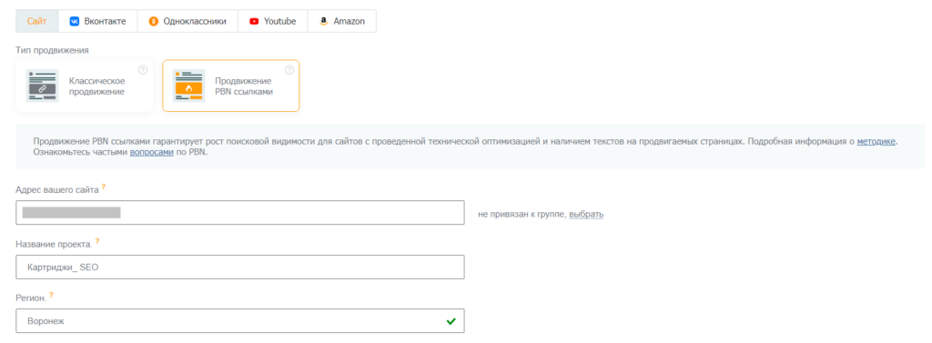 Далее — «Продвижение PBN ссылками»: