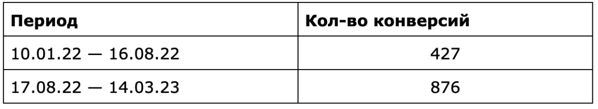 Есть также данные по росту конверсий — количеству отправленных форм заявок на заправку картриджей. Для сравнения взяли предыдущий аналогичный по продолжительности период.