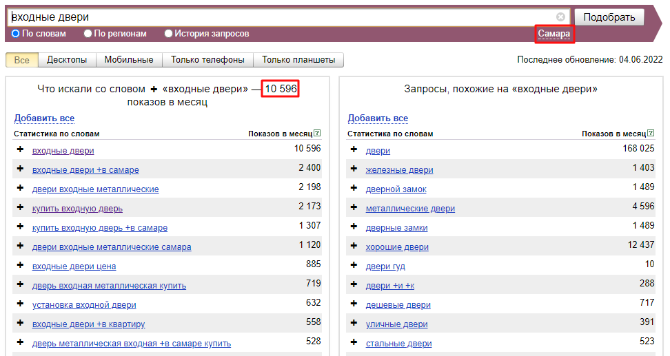 Убедимся, что спрос на продукт в регионе большой. Возьмем статистику Вордстата по одному из высокочастотных запросов: