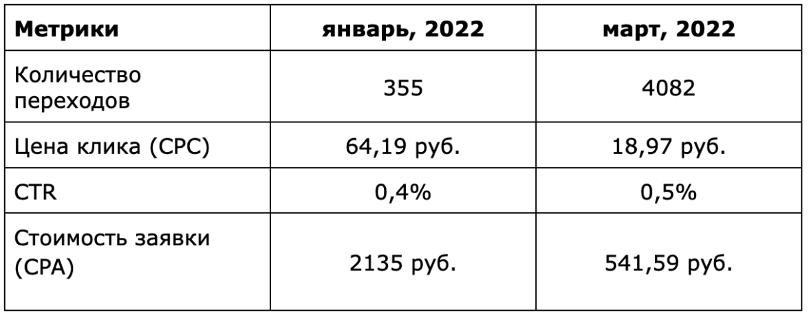 До февраля 2022 года у клиента была настроена еще и рекламная кампания в Google Ads. После ухода Google с российского рекламного рынка особенно важно было наращивать переходы из Яндекс.Директа, чтобы восполнить недоступный канал. И это удалось: