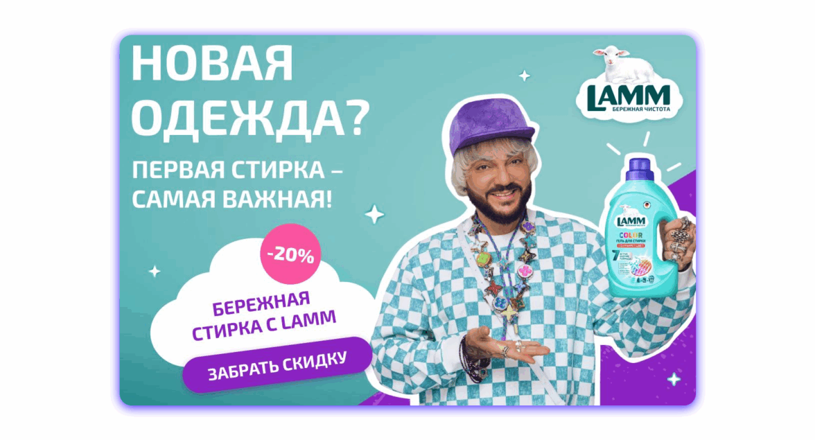 Основная идея — найти пользователей, которые покупают или недавно купили одежду и привести их на лендинг, заинтересовав оффером со скидкой на покупку товаров бренда. Довольно быстро родилось рабочее название проекта — Бережная стирка с LAMM.
