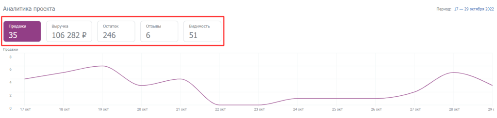 Динамика продаж, выручки и видимости продвигаемой карточки представлена на интерактивном дашборде PromoPult: