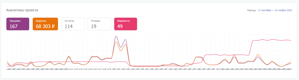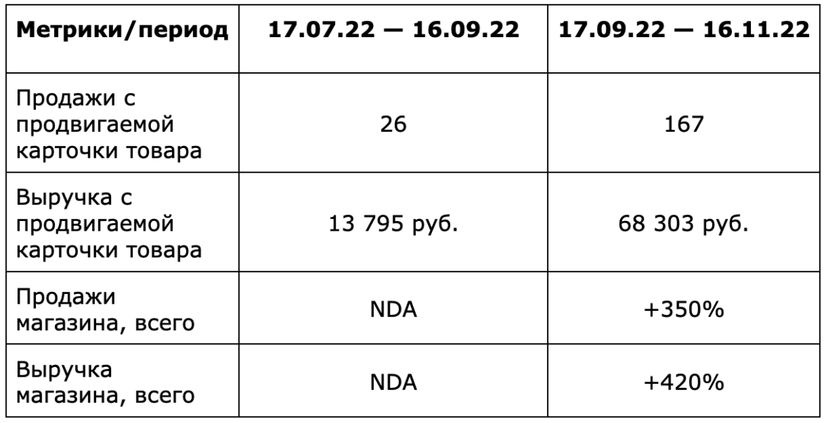 Вот результаты по продажам и выручке за период с 17.09.22 по 16.11.22 по сравнению с предыдущим двухмесячным периодом: