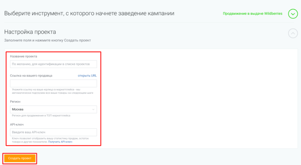 Указываем API-ключ — уникальный идентификатор продавца на Wildberries. Это необязательно, но с ним будет доступна подробная статистика по продажам и выручке на интерактивном дашборде. О том, где взять API-ключ, читайте здесь.