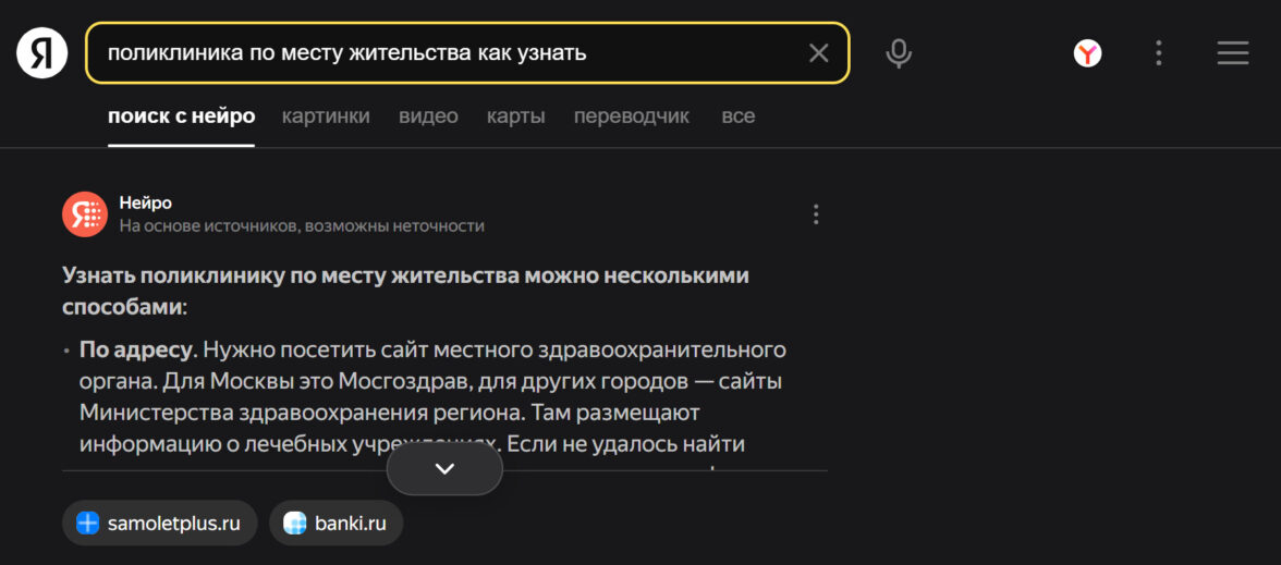Яндекс выдает короткие и полезные ответы с блога Самолет Плюс