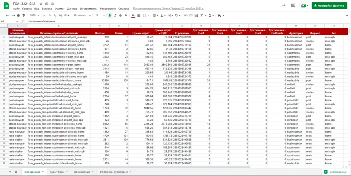 Это помогло протестировать различные комбинации в текущих аудиториях. Например, сегментировали аудитории на более мелкие группы, пересекали аудиторию родителей с другими интересами/видами деятельности. Далее определяли эффективные связки и отключали наименее эффективные объявления.