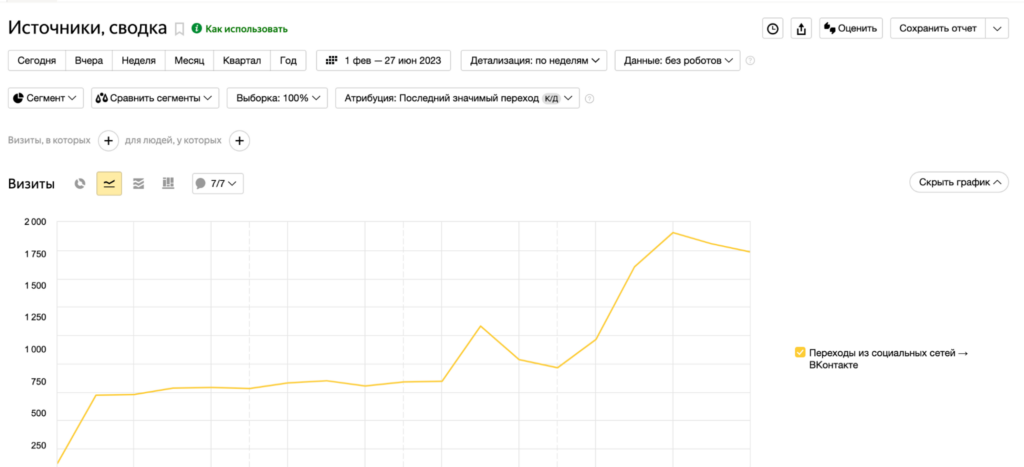 График из Яндекс Метрики показывает рост трафика из ВКонтакте: