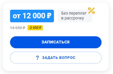 Подробно распишите тарифы и скидки, сделайте акцент на акциях, рассрочке или обучении в кредит.