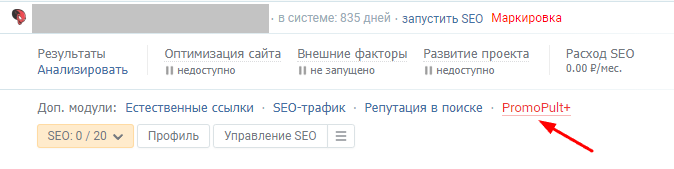 Для сайтов, которые уже продвигаются в PromoPult, подключение происходит буквально в несколько кликов.