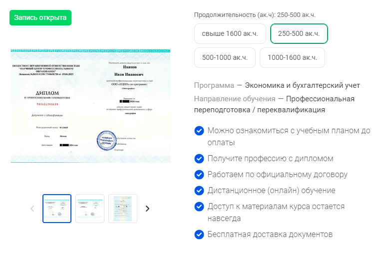 Если предоставляете диплом или свидетельство государственного образца, обязательно упомяните об этом на странице курса.