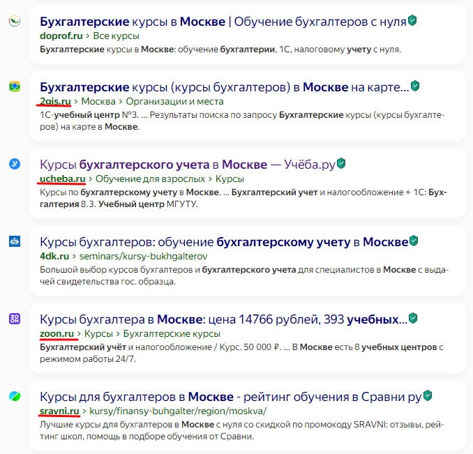 Кроме сайтов обучающих центров места в топе Яндекса занимают агрегаторы и отзовики