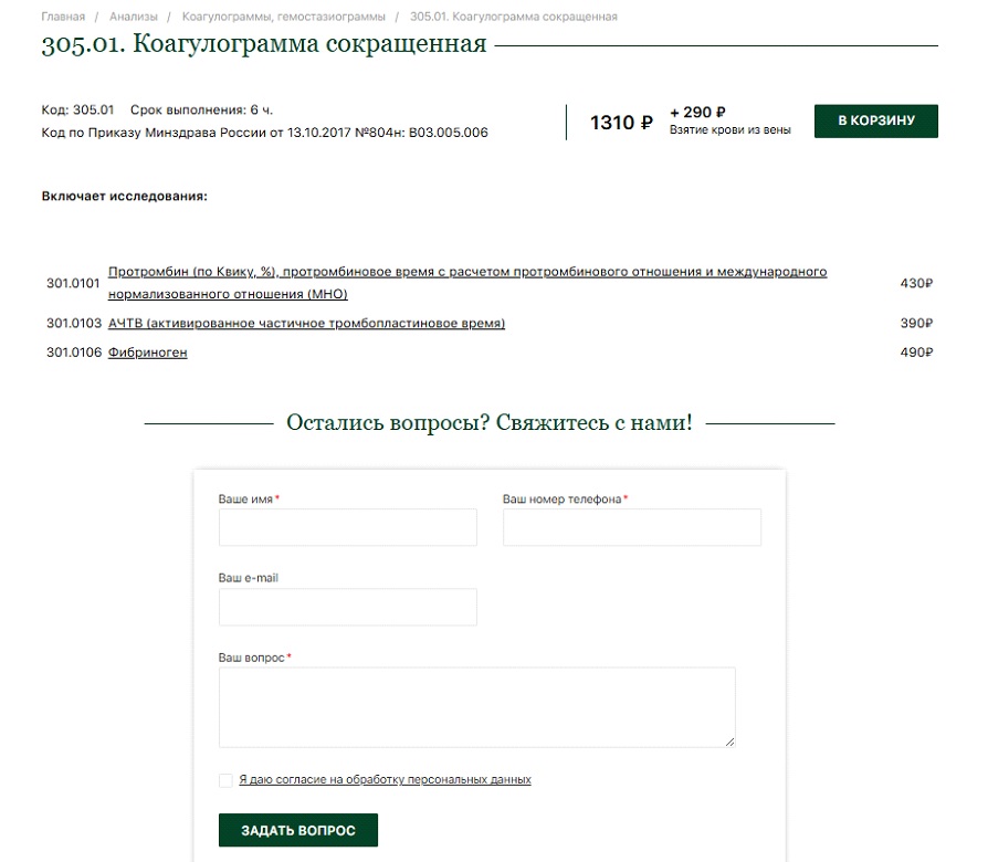 И снова парадокс: спрос на услуги клиники имеется, потенциал большой, но неудачное юзабилити лишает клинику конверсий и пациентов. Представьте, что пациентка ищет в поиске «анализ на гемостаз при беременности», попадает на сайт, но не видит подробное описание анализа, не понимает, как к нему подготовиться, в каком виде она получит результаты. Потом долго ищет форму, где бы записаться, а с телефона вообще записаться не может, так как нет корзины. Пациентка покидает сайт и уходит к конкурентам, у которых все просто, удобно и понятно.
