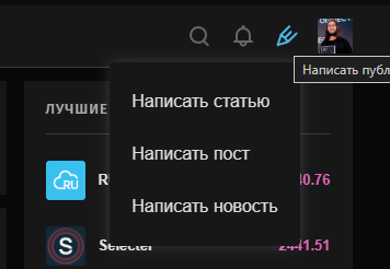 Точкой входа для написания статей на Dsgners также служит верхний правый угол.