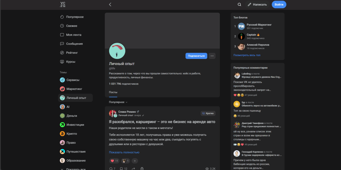 По сути, VC просто собирает статьи по конкретной тематике в отдельную категорию, откуда их удобнее всего искать. Интересно вам читать истории из личного опыта — подписываетесь на категорию и в ленте вам в первую очередь будут высвечиваться именно это.