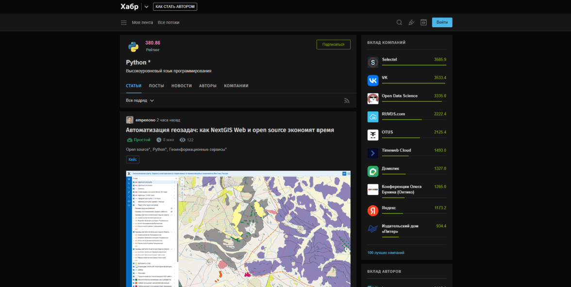 Тут появляется «вклад» компаний в эту тему. Условно, Selectel больше всех написал качественные материалы по Python и, вероятнее всего, наиболее экспертен в этой теме.