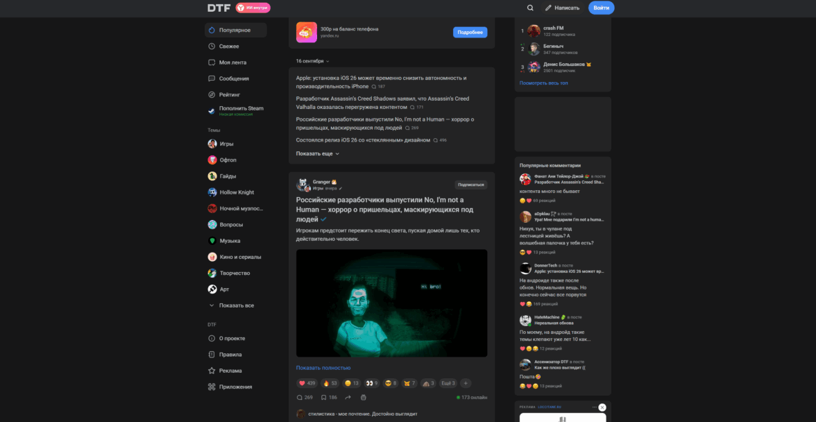 В целом, если убрать лого и скрыть «темы», то вы легко перепутаете сайты. И если погуглить, то выяснится, что в 2016 году Издательский дом «Комитет» выкупает DTF и включает его в свой холдинг. В нем же находится VC.ru и TJournal. В целом, это не так важно в контексте разбора самого сервиса, но не упомянуть это (в каком-то смысле) историческое событие блогинга я не мог.