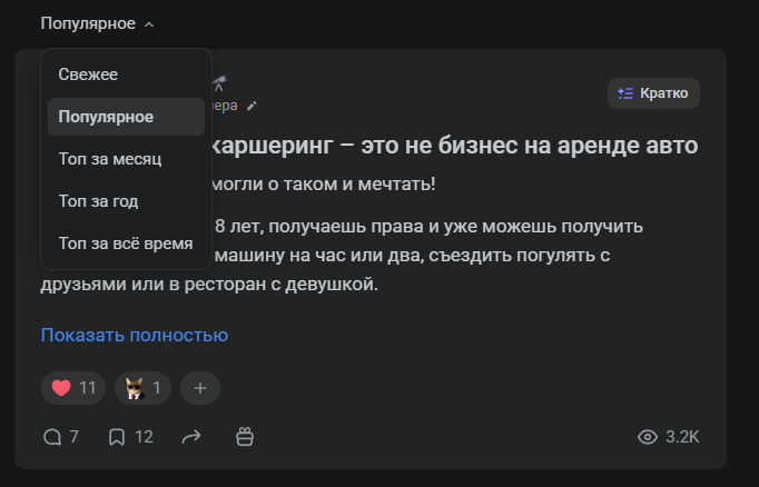 Из минусов — чтобы перейти на статью нужно кликнуть именно на заголовок. Если кликнуть на фото, то оно увеличится. Если на видео — поставится на паузу/снимется с неё. На остальные элементы — произойдут точечные взаимодействия. «Глазик» покажет чуть больше инфы по просмотрам, а реакции — неудивительно, поставят реакцию. Словно было бы гораздо удобнее переходить на статью по клику на карточку, а не стараться целиться в заголовок.