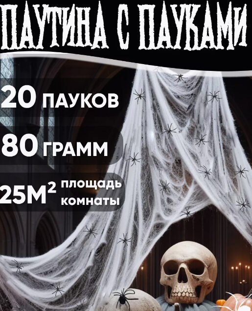 На втором месте по количеству продаж в той же категории «Карнавальные товары» на Wildberries искусственная паутина. По данным SellerFox, товар приобрели в октябре более 6 тысяч раз на общую сумму свыше 1,8 млн рублей. Селлер выставил товар на площадку в августе 2024 года и уже вышел в топ в своей категории. В комплект к паутине прилагаются сразу 20 пластиковых пауков.