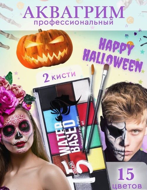 Аквагрим из 12 цветов стал лидером по количеству продаж в категории «Карнавальные товары» на Wildberries. По данным сервиса внешней аналитики маркетплейсовSellerFox, за последний месяц товар приобрели более 11 тысяч раз. Выручка наиболее успешного в своей категории селлера превысила 5 млн рублей. Продавец эффектно адаптировал карточку товара специально для Хэллоуина.