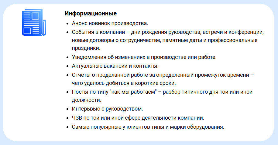А вот такие рубрики мы предложили для информационных постов: