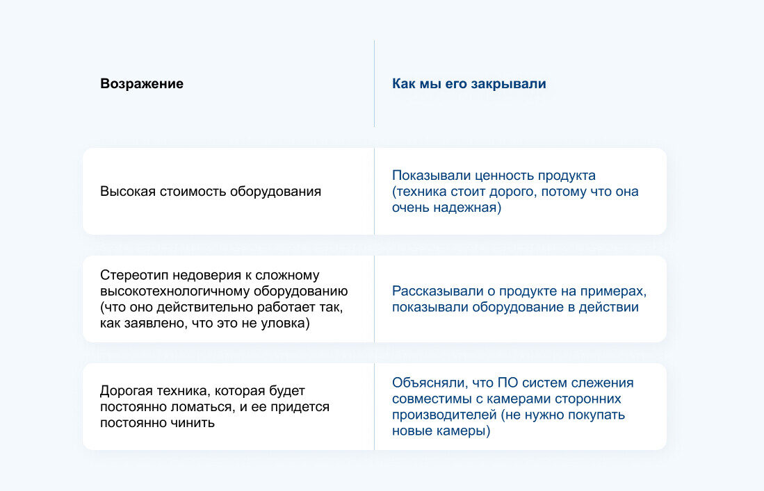 Контентом мы закрывали основные возражения клиентов: