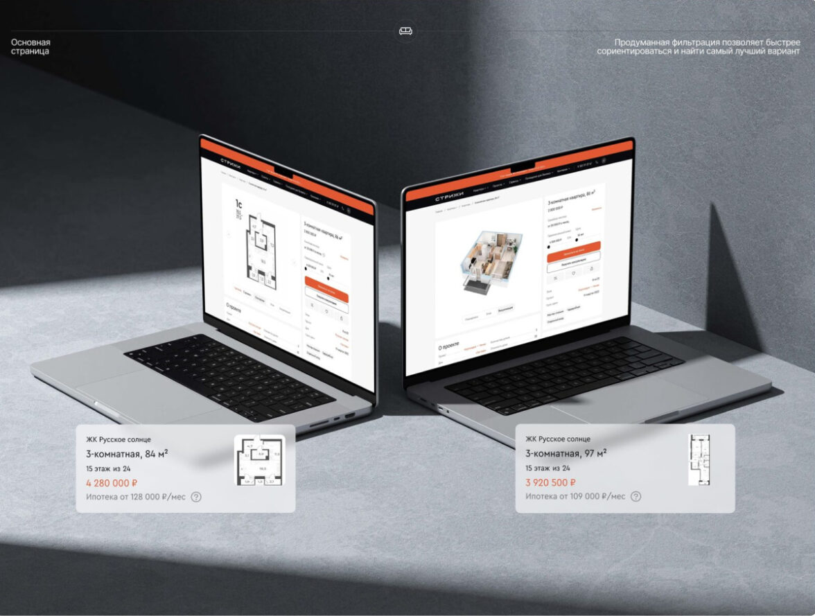 Разработаны внутренние страницы для жилищных комплексов, квартир, кладовых и парковок.