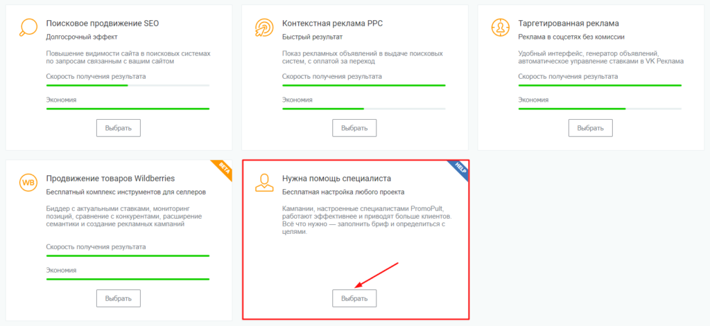 Чтобы правильно настроить проект, избежать ошибок и получить лучший результат, рекомендуем на этом шаге воспользоваться помощью специалиста PromoPult: