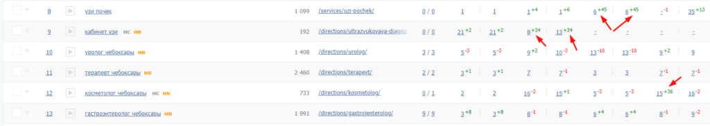 По некоторым запросам позиции выросли больше, чем на 30–40 пунктов: