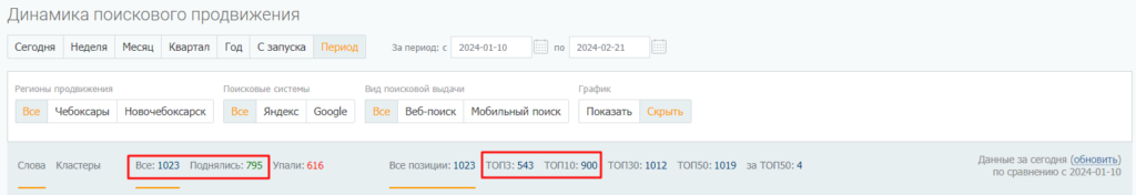 Сводные данные по позициям в Яндексе и Google за период продвижения