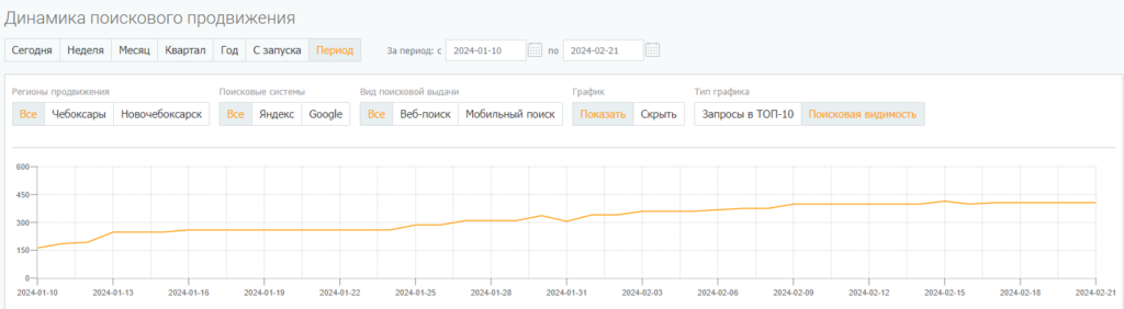 Рост поисковой видимости в Яндексе и Google с 10 января по 21 февраля 2024 года