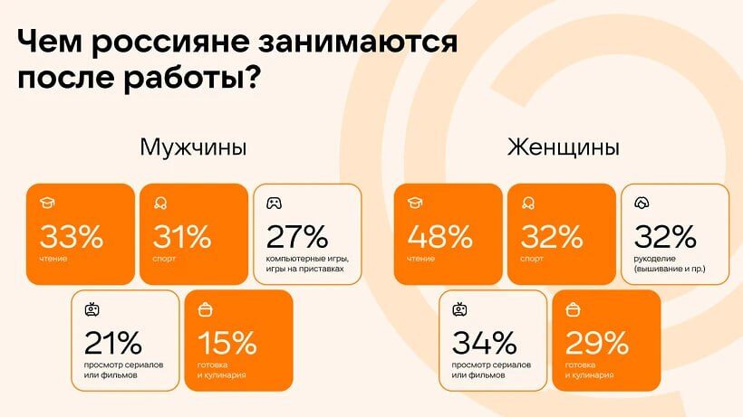 «Работа.ру» и «Одноклассники» выяснили, что видеоигры предпочитают 19% россиян. Увлечения гендерно различаются — первую тройку хобби игры замыкают именно у мужчин (27%). Также на площадке играм начали уделять в 1,5 раза больше времени. А играть внутри соцсети стали на 15% чаще.