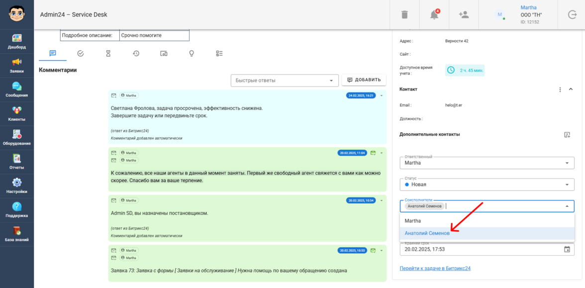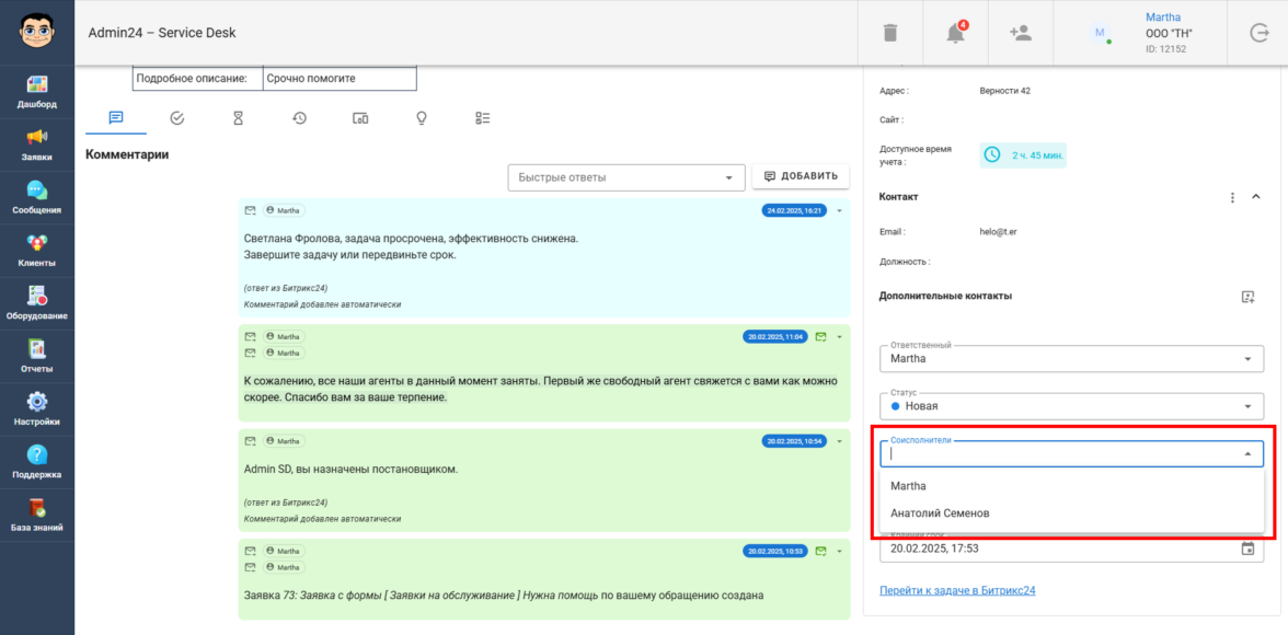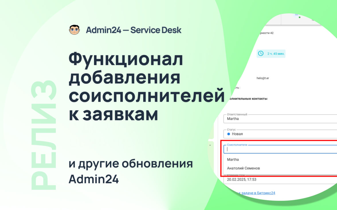 В Admin24 появился функционал добавления соисполнителей к заявкам