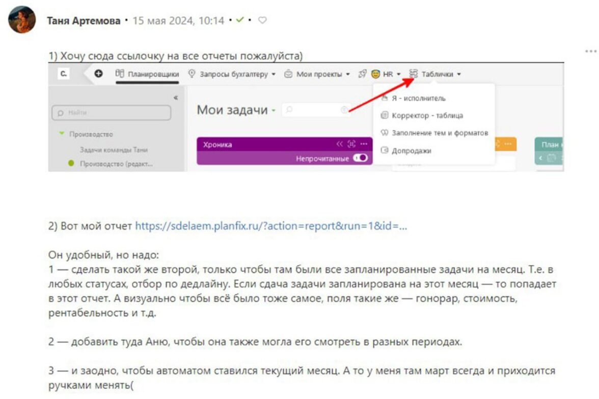 В ПланФиксе можно кастомизировать отчеты под каждого сотрудника