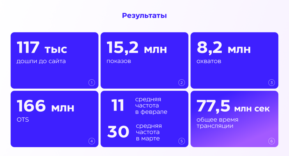 В рамках кампании нам нужно было повысить узнаваемость бренда и привлечь новых пользователей. А чтобы оценить эффективность размещения, важно было продумать механику расчета доходимости аудитории, увидевшей рекламу, до сайта.