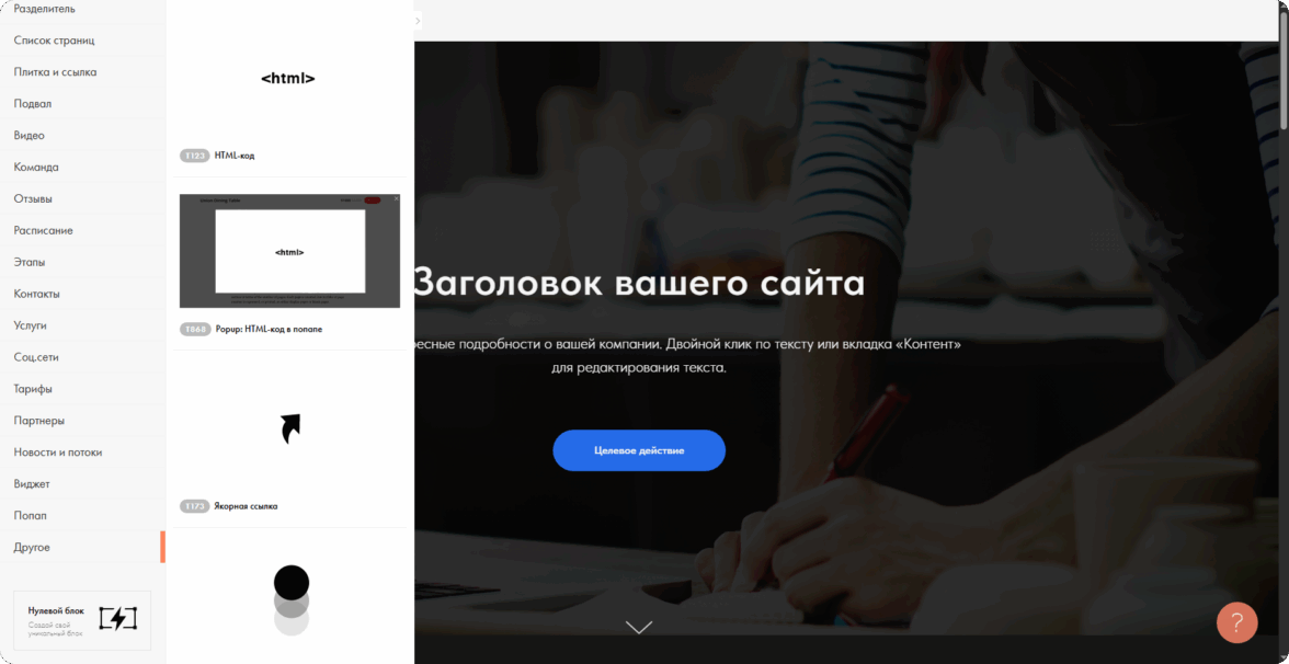 Zero Block подходит тем, кто хочет больше свободы в дизайне. Здесь можно разместить видео в любом месте, наложить текст, кнопку или форму. Это уже более гибкий способ, но он требует аккуратности.Если добавить слишком много анимаций или сторонних скриптов, страница станет тяжелее. Для новичков правило простое: чем меньше лишних эффектов, тем быстрее работает сайт.
