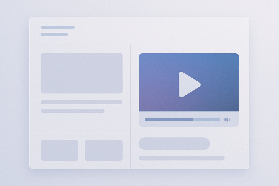 Видео на сайте уже давно не выполняет роль просто визуального дополнения. Сегодня видео виджет на сайт — это полноценный элемент интерфейса, который помогает пользователю быстрее разобраться в продукте, услуге или сценарии взаимодействия. В отличие от классического встраивания, видео виджет работает внутри страницы, не отвлекая человека на сторонние платформы и не разрывая пользовательский путь.Когда видео органично встроено в структуру сайта, оно перестаёт быть «отдельным объектом» и начинает работать на вовлечённость, доверие и конверсию.
