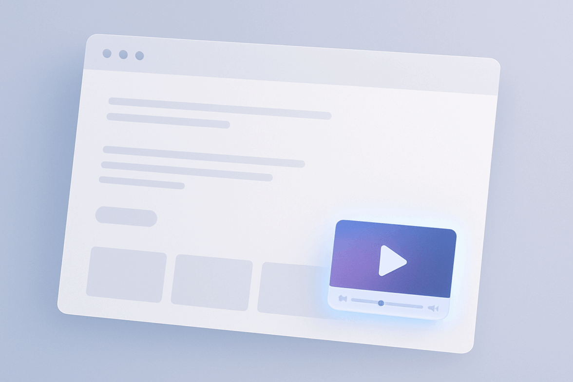 Виджет видео может располагаться внутри блока, карточки, попапа или в углу экрана. Он подстраивается под визуальный стиль сайта и не нарушает структуру страницы. За счёт этого видео для сайта становится не фоновым контентом, а активным элементом взаимодействия.